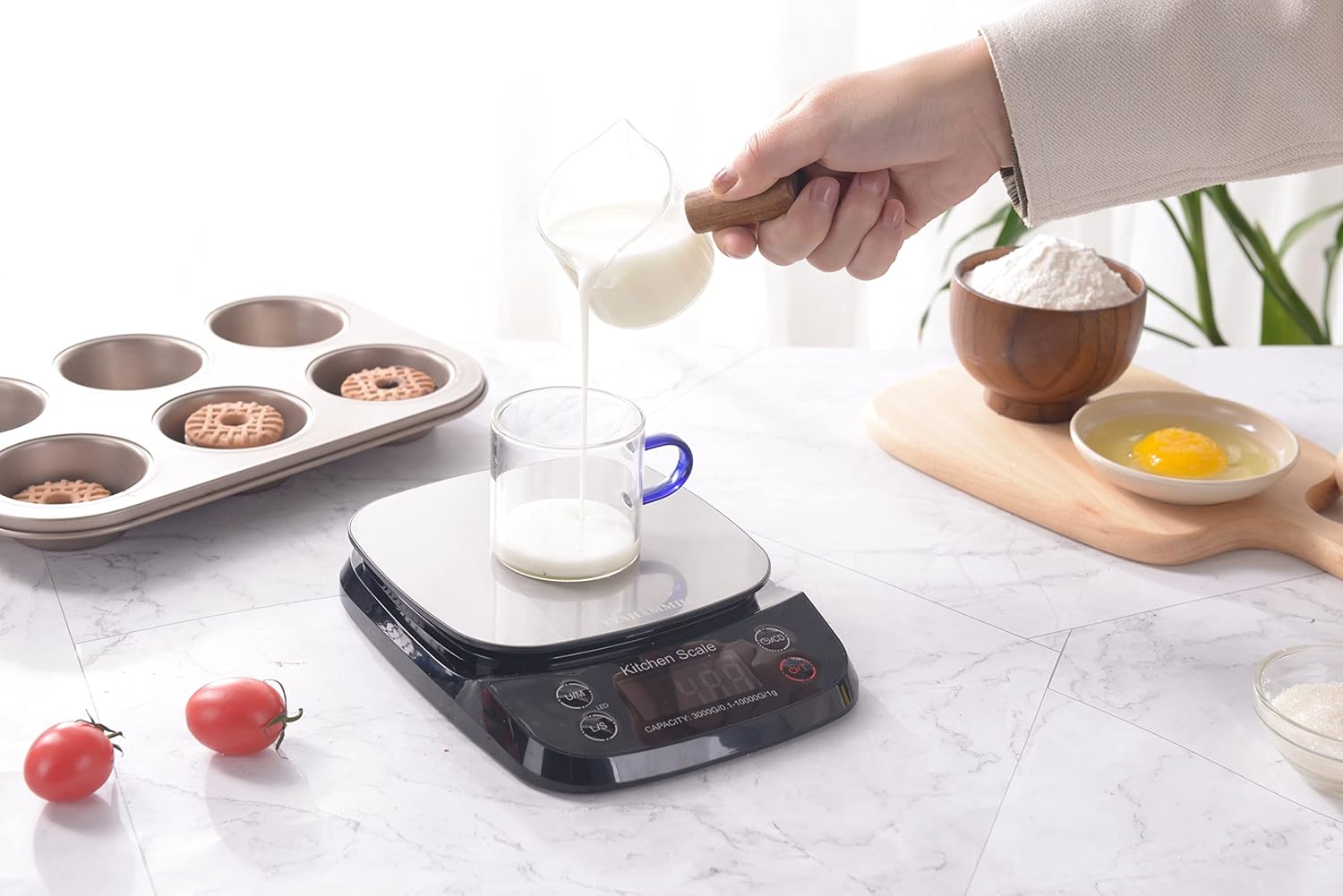 First, put the container on the scale at the time the LED display shows “0”.